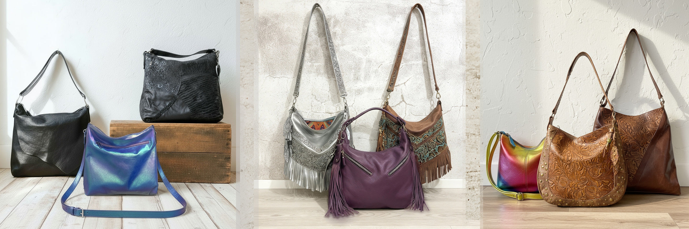 Studded Tooled brown Leather Hobo crossbody or shoulder Bag, 1 IN STOCK