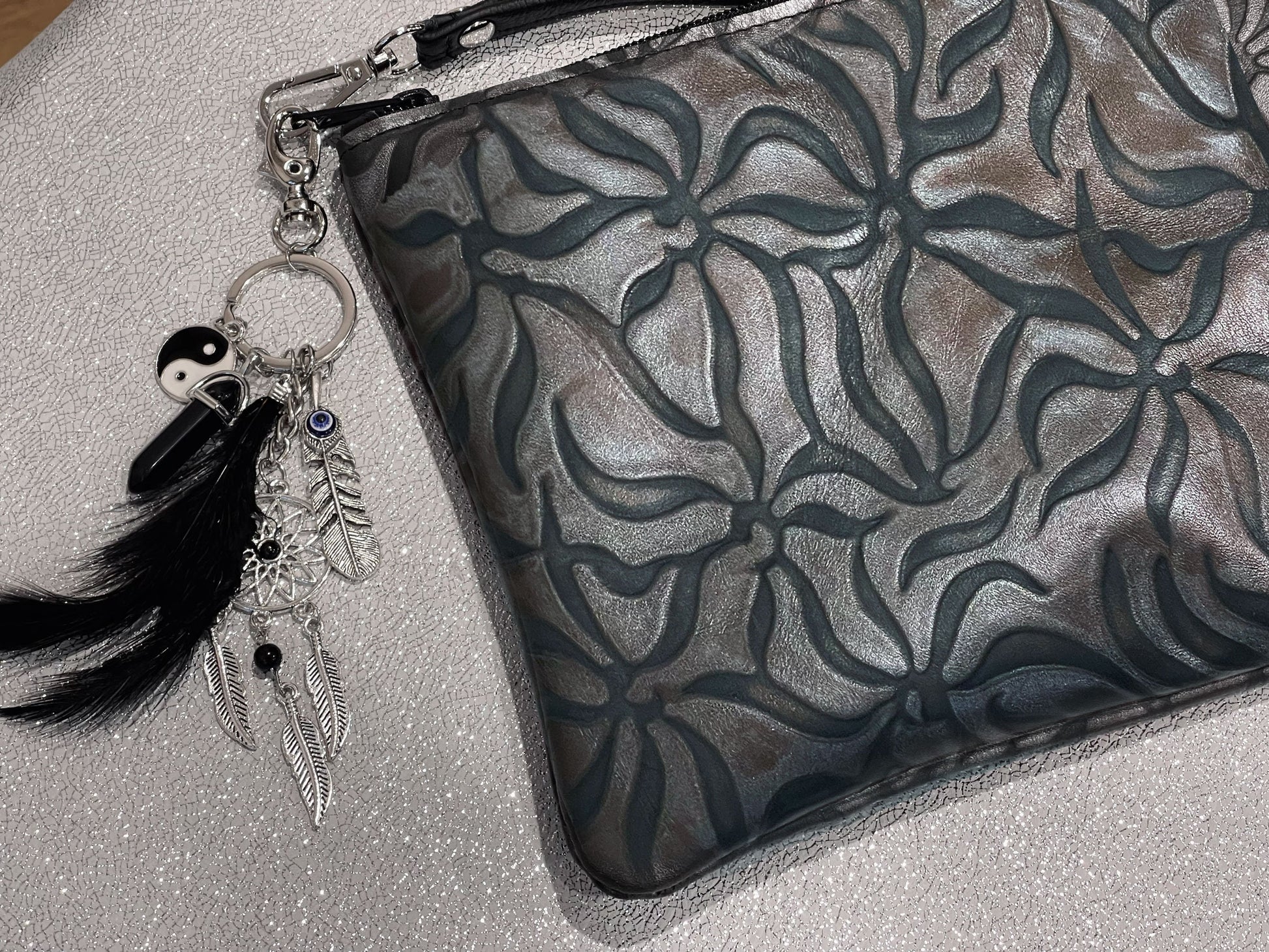 Black and multi metal embossed Wristlet, clutch, soft leather purse IN STOCK