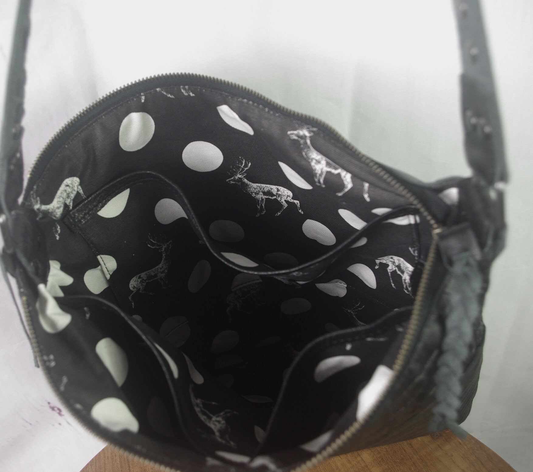 Has clean suede underside strap for non-slip. Your new everyday bag. You won’t lose anything in this bag - with leather edged pockets Will take heavy items. Fits ipad, book, water bottle, purse, phone, keys, makeup, and more. Strong and durable