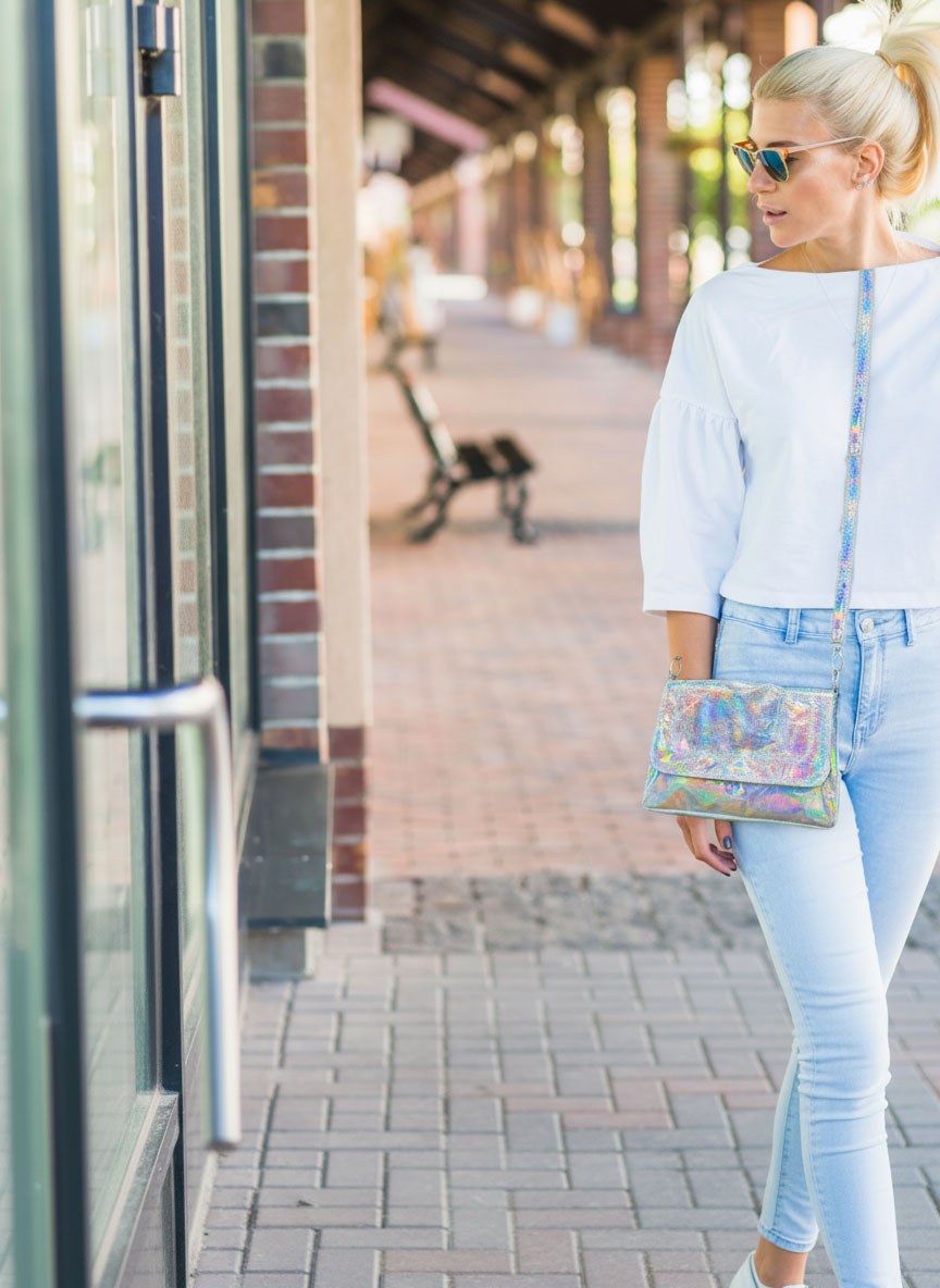 Holographic Silver flap over Messenger bag, premium Italian holo leather, Iridescent