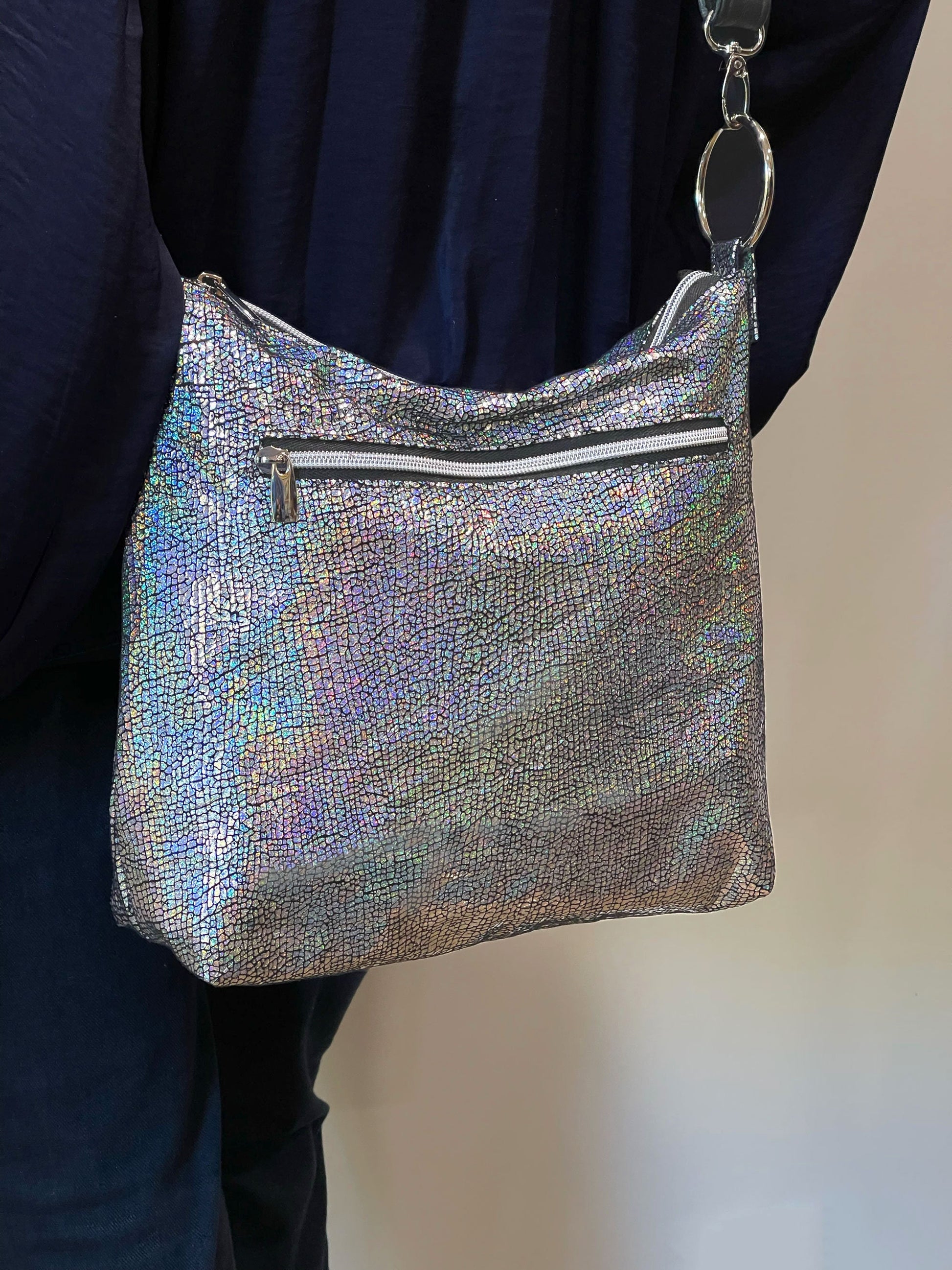Holographic Silver Iridescent Metallic Crossbody Bag