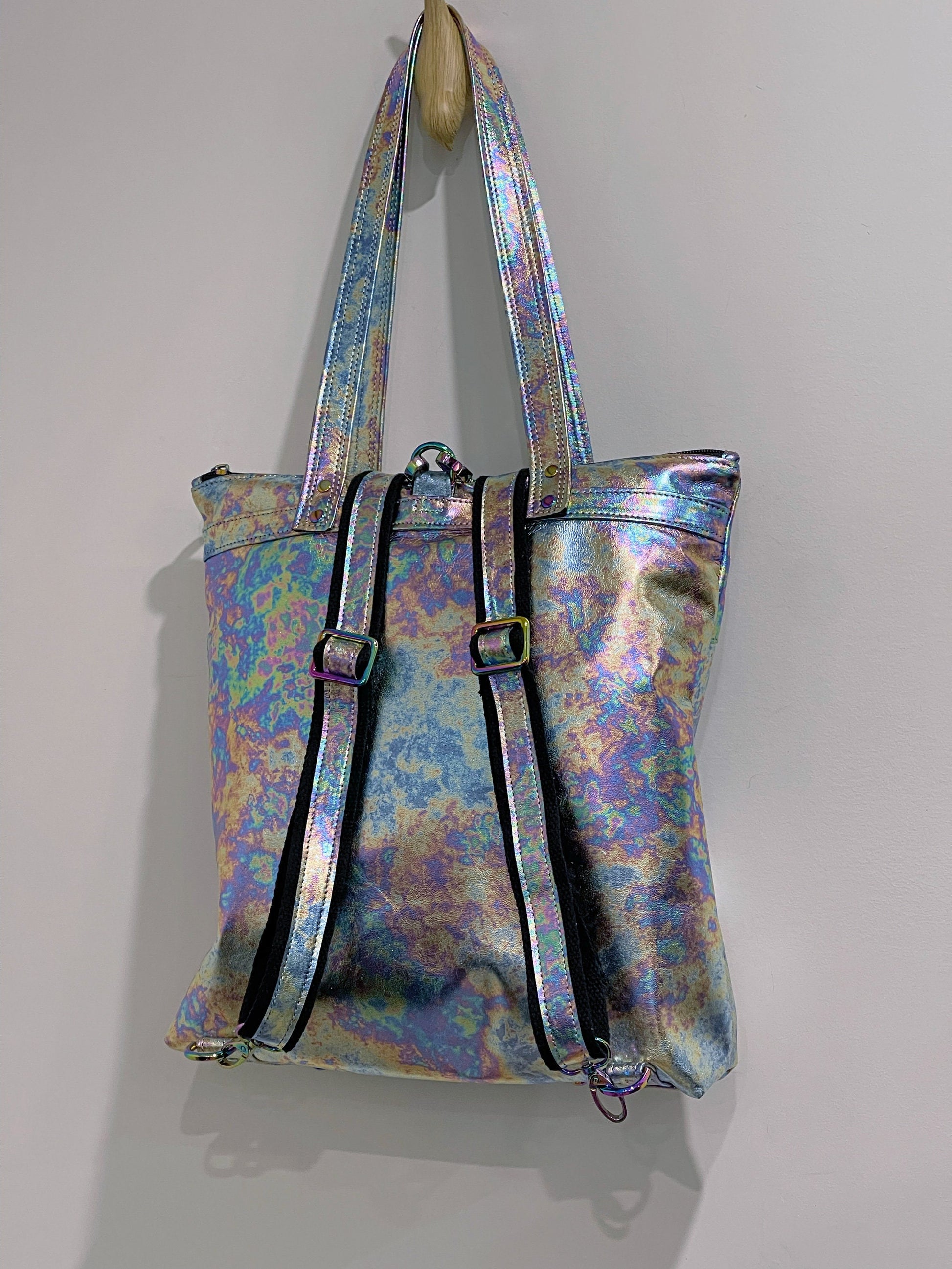 Metallic Oil Slick leather backpack and tote, FREE purse