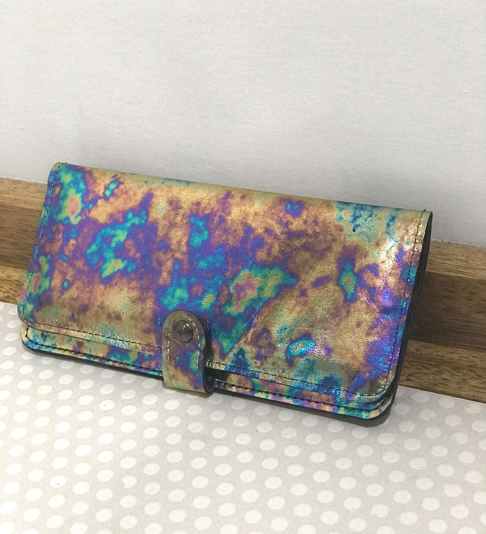 Rainbow oil metallic Leather Wallet Purse Or Wristlet