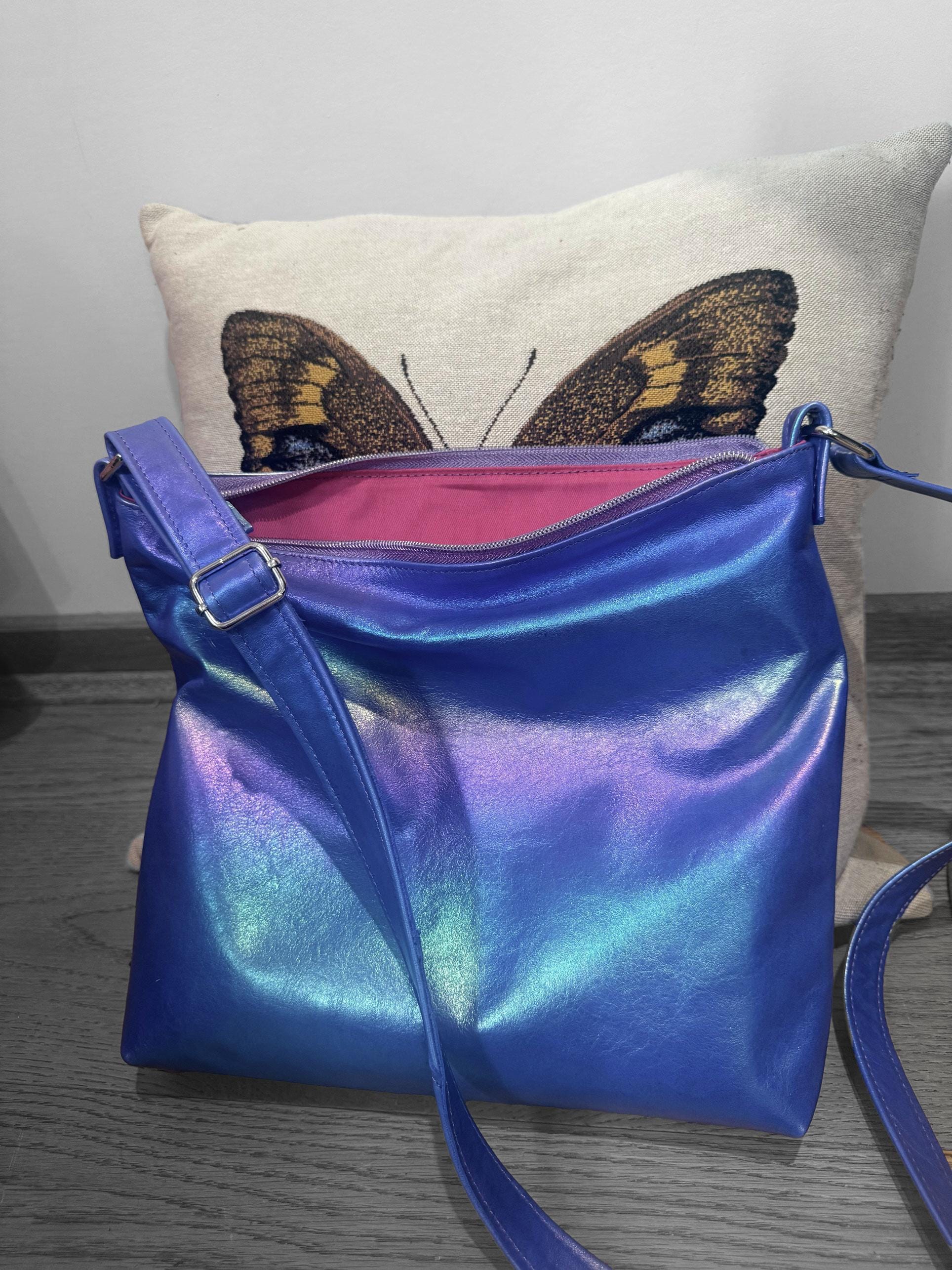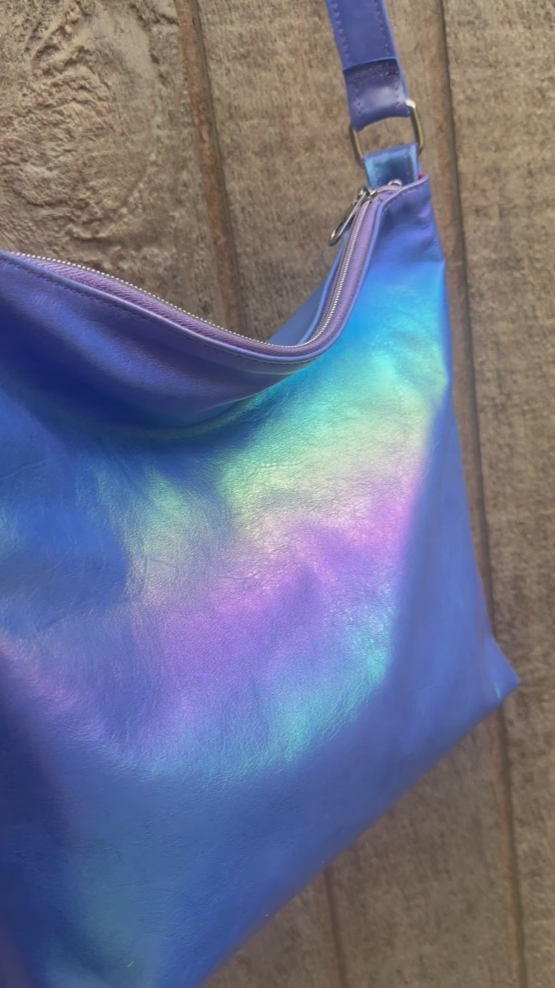 Smooth Metallic Leather Bag, in Rainbow Blue Aurora (this is the blue based Aurora leather, there is also a purple based available - shown in the video, available in shop)