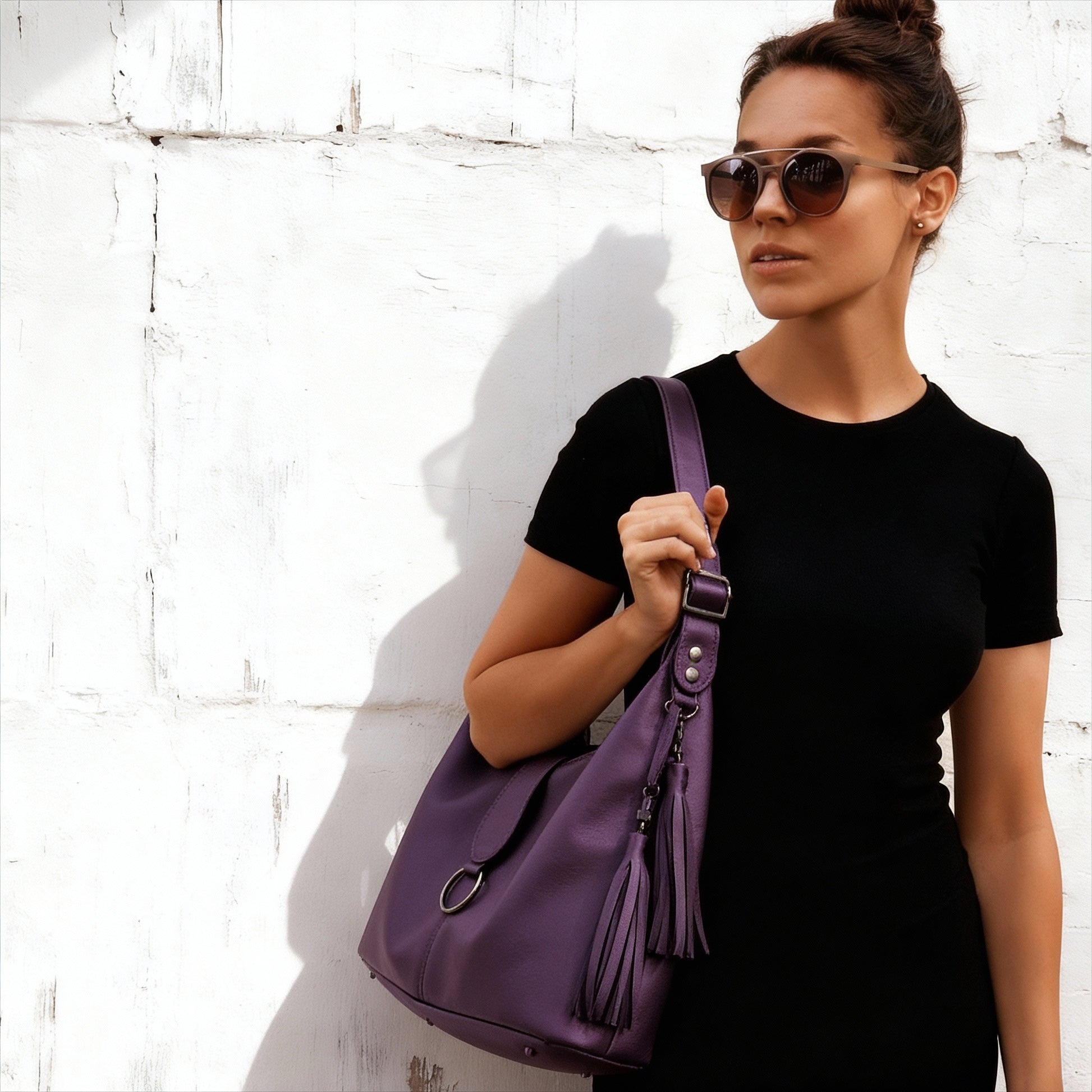 Purple Top Grain Leather Italian Hobo Shoulder Bag