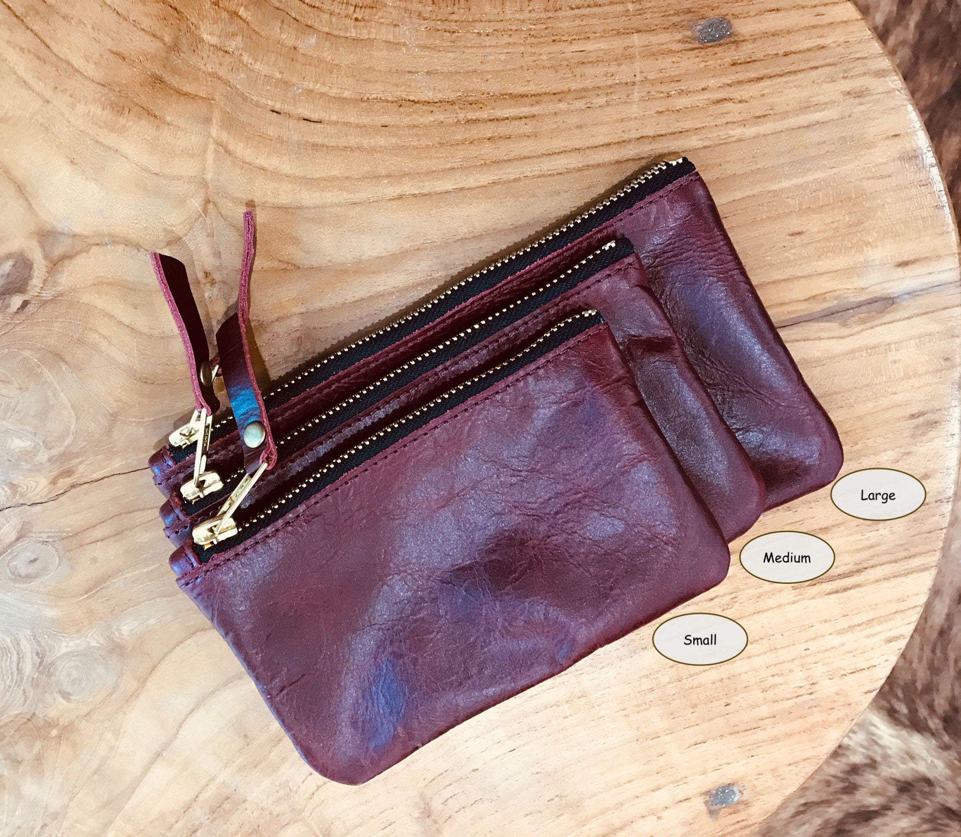 Note: Each purse will be cut from a different part of the leather showing different colours (both sides will be different colours as shown)
