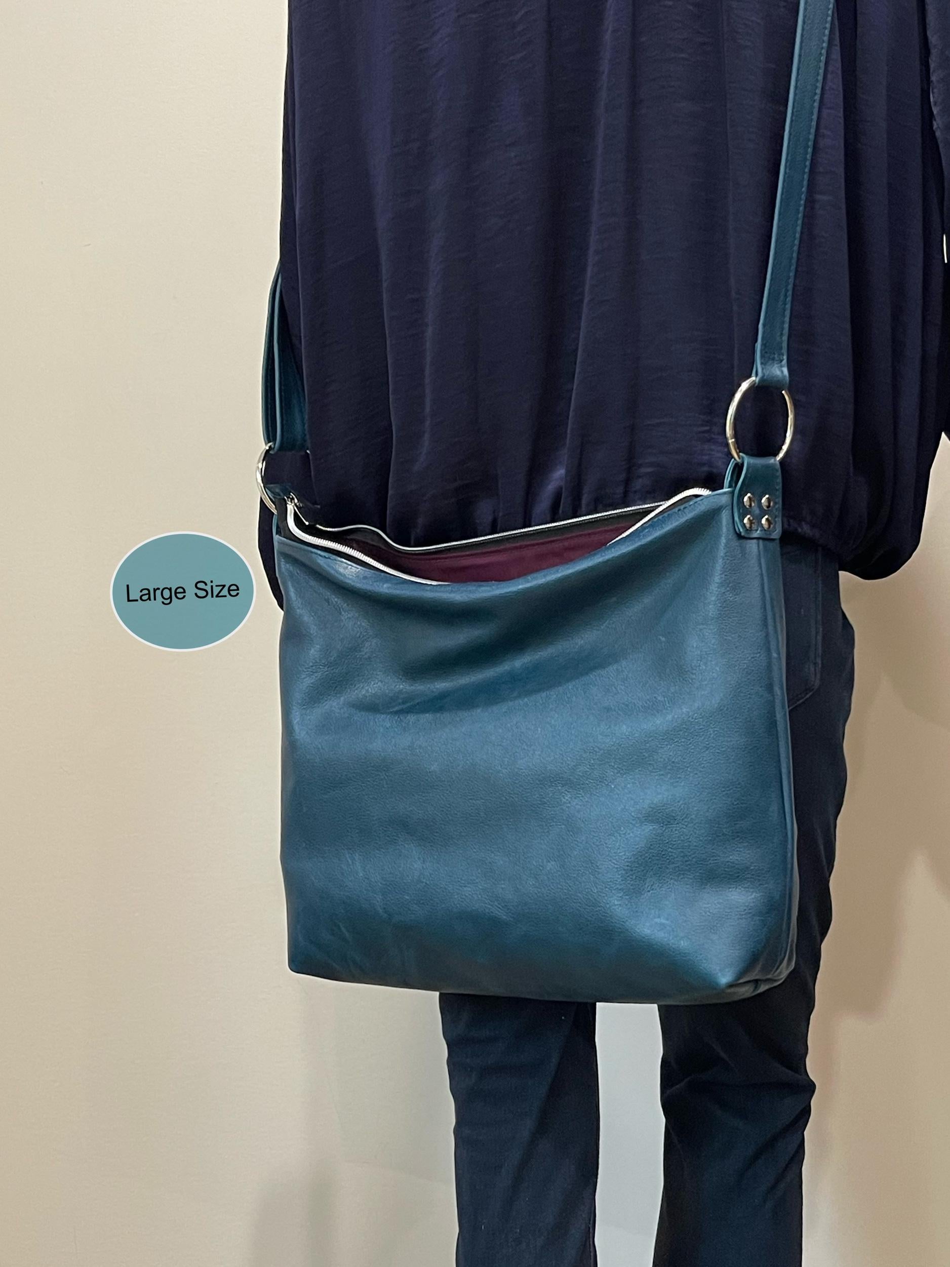 Teal Leather Crossbody Bag, Soft leather