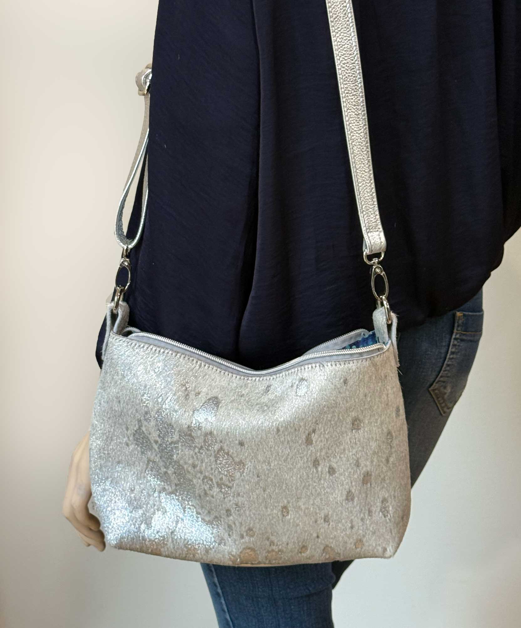 Cowhide with Acid Wash Holographic Leather Crossbody